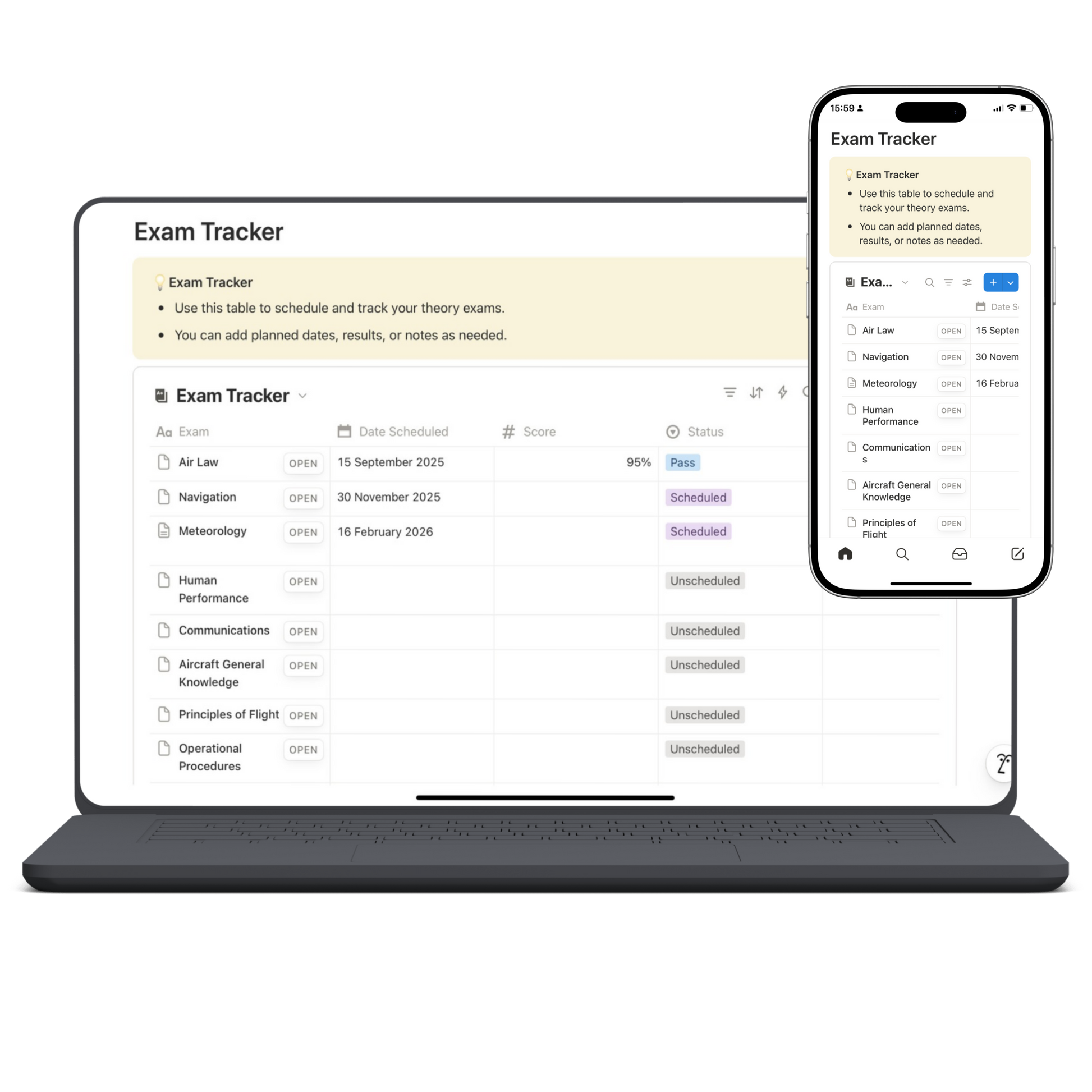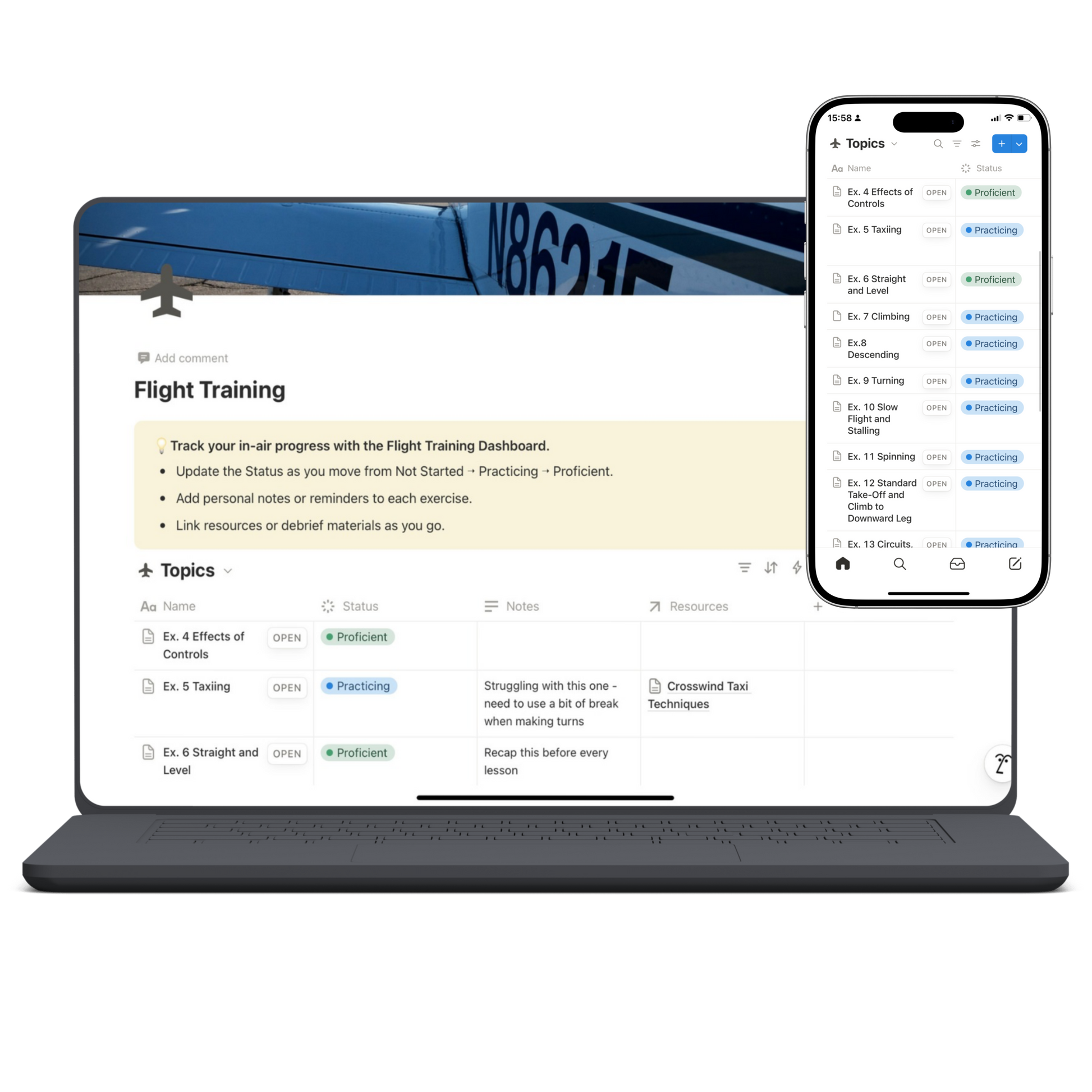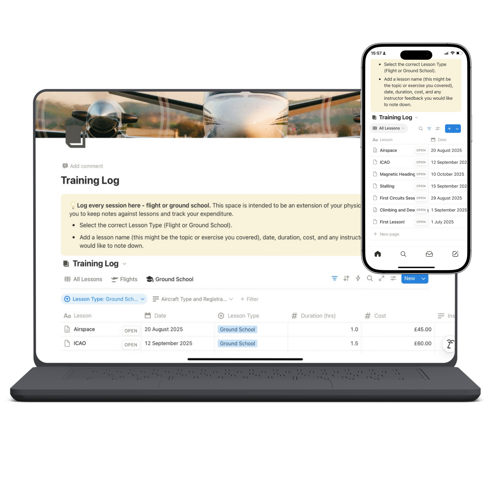 Learning to fly is one of the most rewarding challenges you’ll ever take on, but it also comes with an overwhelming amount of information, resources, and admin to keep track of. As a pilot in training myself, I found it hard to stay on top of lessons, theory topics, notes, exams, videos, and costs scattered across notebooks, textbooks, YouTube playlists, and loose sheets of paper.