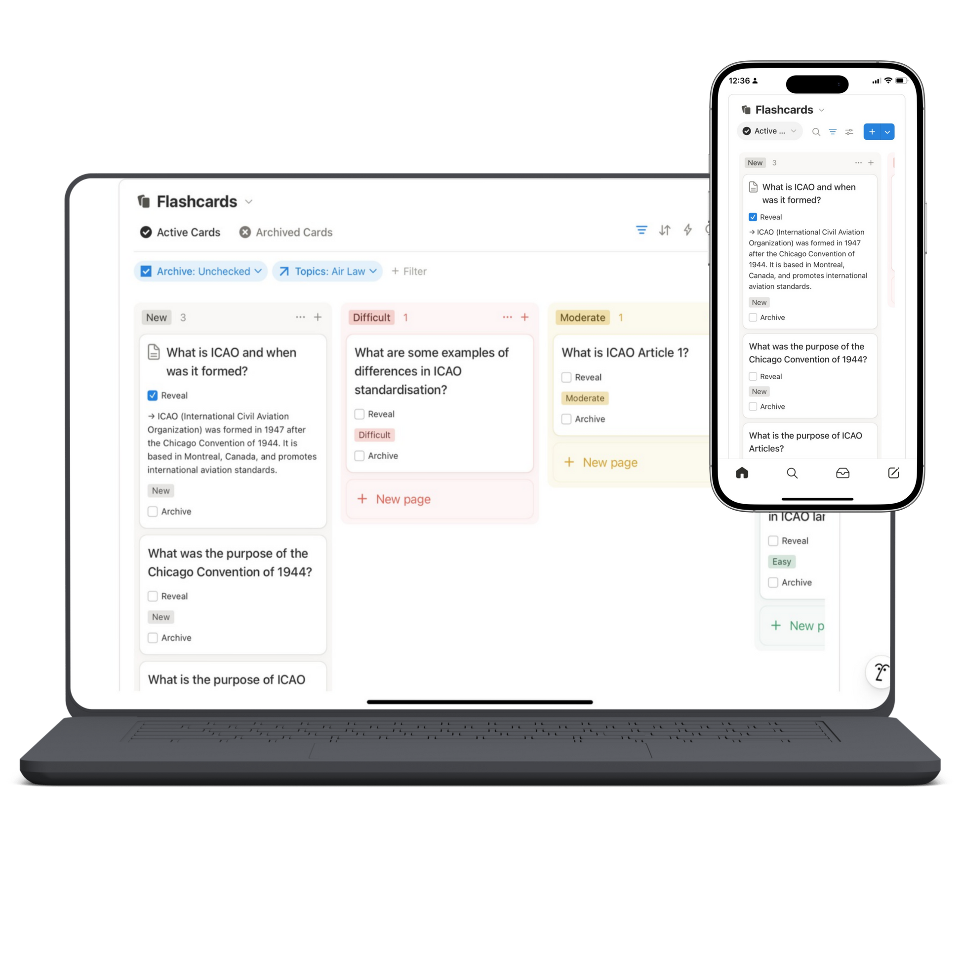 - Flashcards - Tag by topic, sub-topic and difficulty for active recall - perfect for when you’re on the go and quick revision during commutes!
